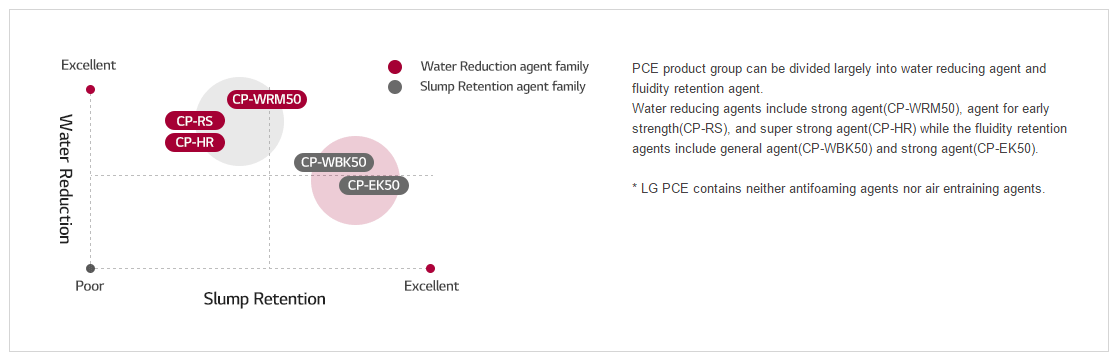 It is used in a variety of construction/engineering sites. LG Chem's PCE products are available in over 30 countries worldwide.