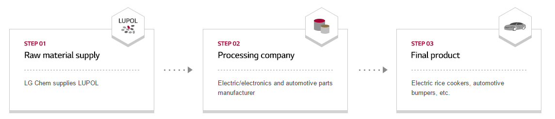 LUPOL, an engineering plastic based on PP, is a functional PP compounded resin whose mechanical properties and heat resistance have been enhanced while