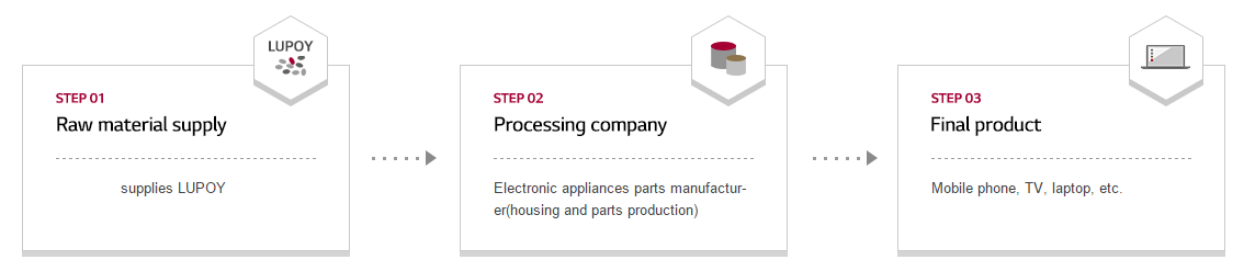 LUPOY is an engineering plastic made with LG Chem's PC(Polycarbonate) or PC/ABS alloy.